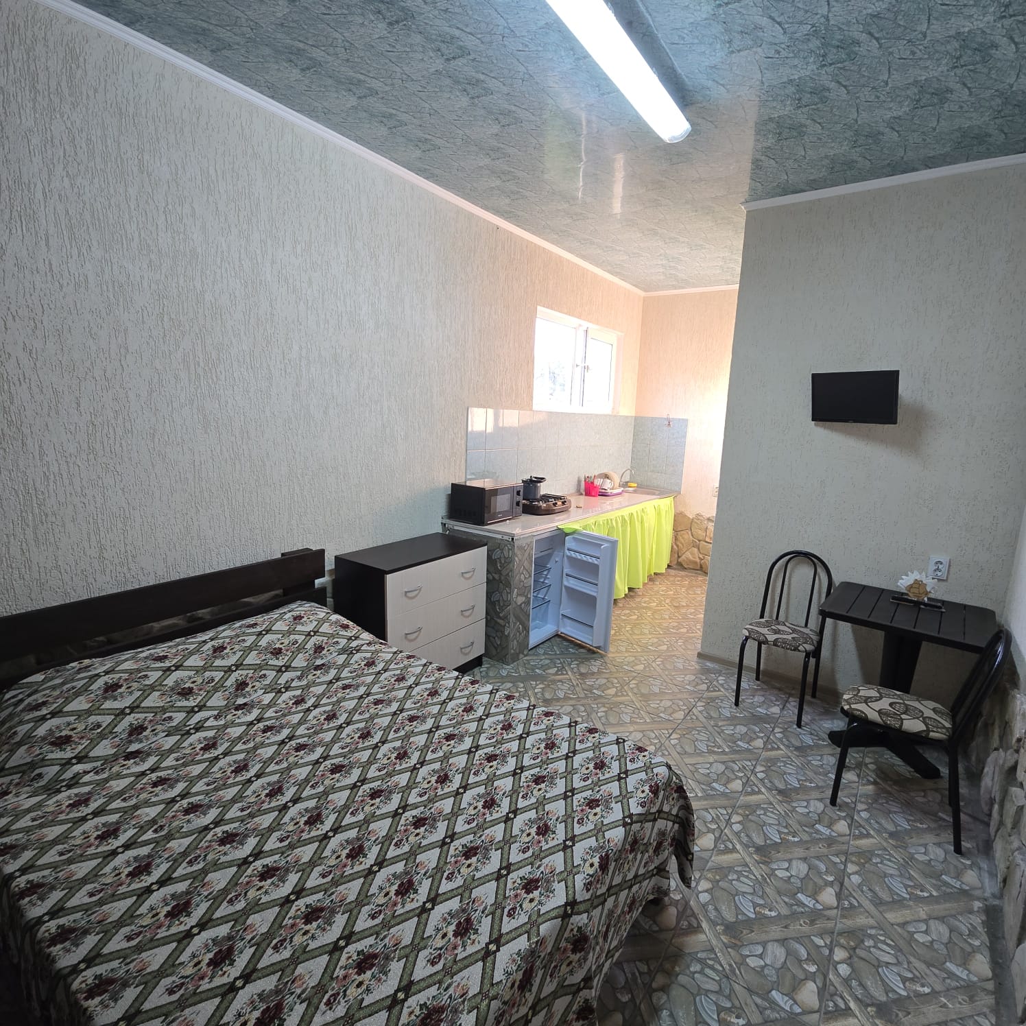 Просторный номер со своей кухней, в котором комфортно разместятся два гостя. Стильная спальня с двуспальной кроватью сделает ваш отдых роскошным.